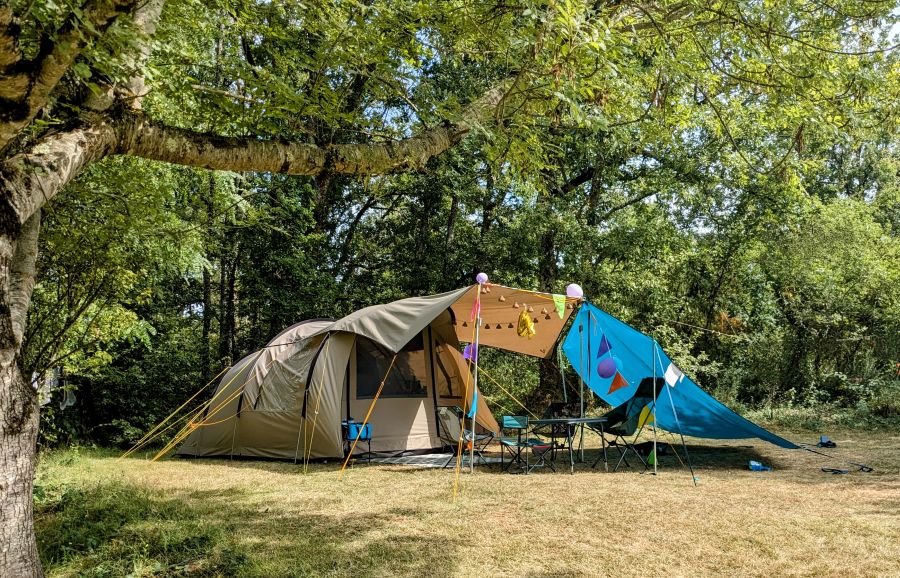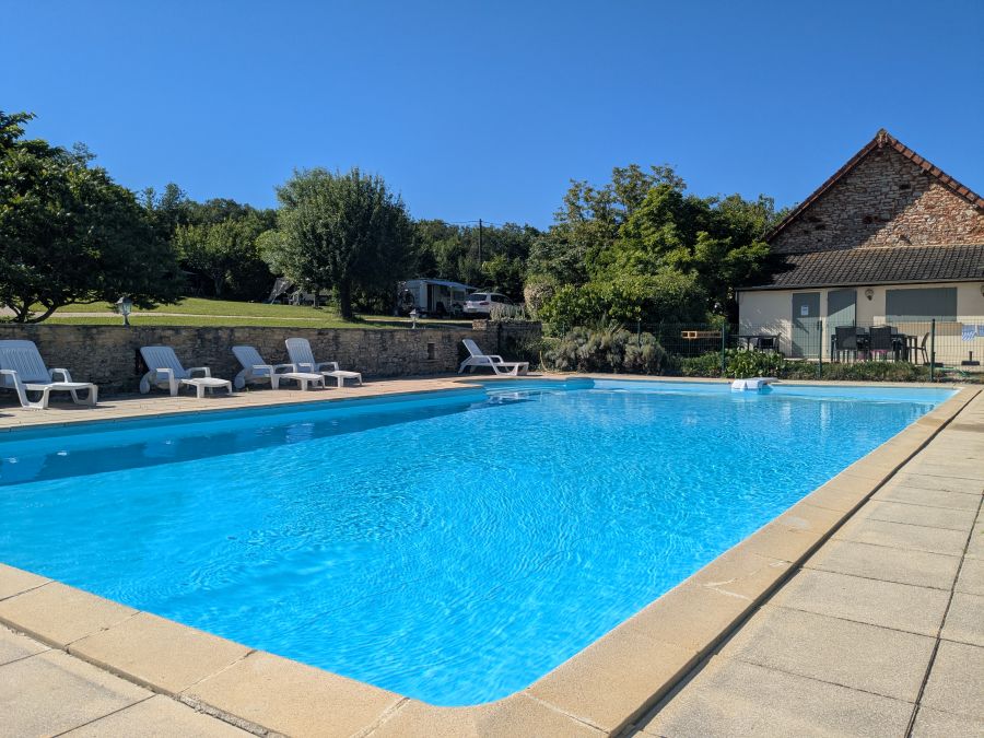 Het mooie groene kampeerterrein telt 25 ruime kampeerplaatsen waar kampeerders hun tent, caravan of camper kunnen plaatsen. Ons terrein is geschikt voor caravans en campers tot 7,5 meter.  Aangezien de camping al lang bestaat, staan er overal op het terrein mooie volwassen bomen die niet alleen voor heel veel sfeer zorgen, maar ook voor het feit dat elke kampeerplaats naast zon ook voldoende schaduw heeft. Het uitzicht vanaf de plaatsen is altijd mooi en varieert van prachtig weids uitzicht richting Dordogne, tot uitzicht op het bos en weiland. De plaatsen zijn gescheiden door haagjes en bomen en hebben allemaal een 6 Ampère elektriciteitsaansluiting.